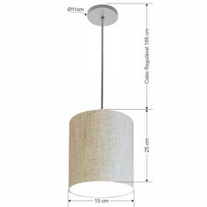 Lustre Luminária Pendente Vivare Free Lux PE-4104CZ Cúpula em Tecido 15x25cm - Cor: Rustico-bege | Cor da Canopla: Canopla cinza e fio cristal