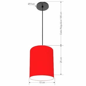 Lustre Luminária Pendente Vivare Free Lux Pe-4104pr Cúpula Em Tecido 15x25cm Vermelho Canopla Preta E Fio Preto
