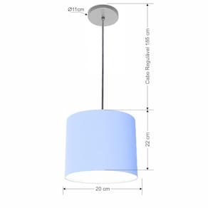 Lustre Luminária Pendente Vivare Free Lux Pe-4105cz Cúpula Em Tecido 20x22cm Azul-bebê Canopla Cinza E Fio Cristal