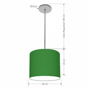 Lustre Luminária Pendente Vivare Free Lux Pe-4105cz Cúpula Em Tecido 20x22cm Verde-folha Canopla Cinza E Fio Cristal