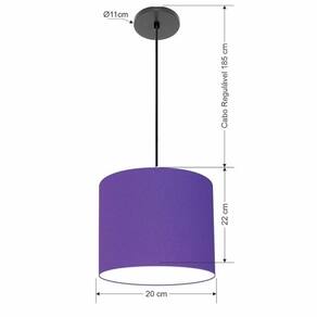 Lustre Luminária Pendente Vivare Free Lux Pe-4105pr Cúpula Em Tecido 20x22cm Roxo Canopla Preta E Fio Preto