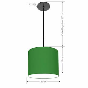 Lustre Luminária Pendente Vivare Free Lux Pe-4105pr Cúpula Em Tecido 20x22cm Verde-folha Canopla Preta E Fio Preto