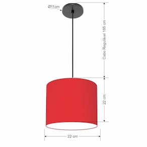 Lustre Luminária Pendente Vivare Free Lux Pe-4105pr Cúpula Em Tecido 20x22cm Vermelho Canopla Preta E Fio Preto