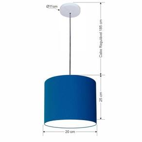 Lustre Luminária Pendente Vivare Free Lux Pe-4106br Cúpula Em Tecido 20x25cm Azul-marinho Canopla Branca E Fio Cristal