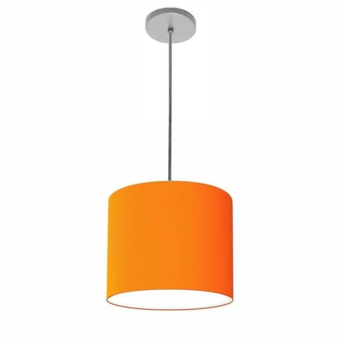Lustre Luminária Pendente Vivare Free Lux Pe-4106cz Cúpula Em Tecido 20x25cm Laranja Canopla Cinza E Fio Cristal