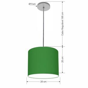 Lustre Luminária Pendente Vivare Free Lux PE-4106CZ Cúpula em Tecido 20x25cm - Cor: Verde-folha | Cor da Canopla: Canopla cinza e fio cristal