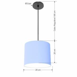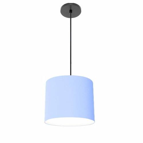 Lustre Luminária Pendente Vivare Free Lux PE-4106PR Cúpula em Tecido 20x25cm - Cor: Azul-bebê | Cor da Canopla: Canopla preta e fio preto