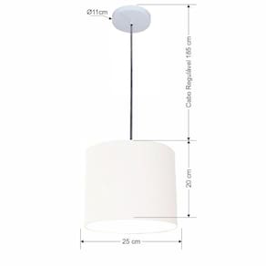 Lustre Luminária Pendente Vivare Free Lux Pe-4107br Cúpula Em Tecido 25x20cm Branca Canopla Branca E Fio Cristal