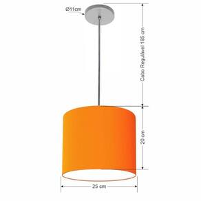 Lustre Luminária Pendente Vivare Free Lux Pe-4107cz Cúpula Em Tecido 25x20cm Laranja Canopla Cinza E Fio Cristal