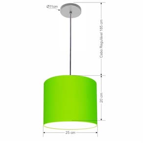 Lustre Luminária Pendente Vivare Free Lux PE-4107CZ Cúpula em Tecido 25x20cm - Cor: Verde-limão | Cor da Canopla: Canopla cinza e fio cristal