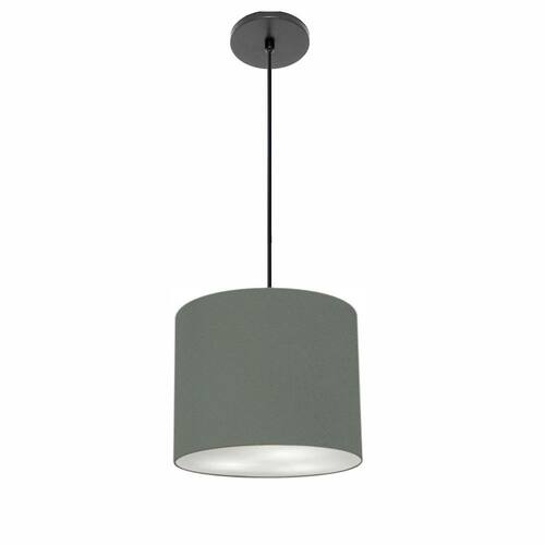 Lustre Luminária Pendente Vivare Free Lux PE-4107PR Cúpula em Tecido 25x20cm - Cor: Cinza-escuro | Cor da Canopla: Canopla preta e fio preto