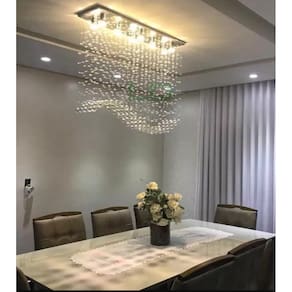 A Luz Decor e Lustres, fabricantes de lustres de cristais, acrílicos, tem como objetivo garantir produtos de qualidade com preços competitivos no mercado de Lustres, Pendentes e Luminárias.DESCRIÇÃO DO PRODUTO* Lustre Com 114 cristais k9 legítimos de 30mm.* Modelo: Onda* Altura: 1,10M Á 1,50M De Altura* Base de inox espelhado 90cmx25Cm acabamento corte a laser.* Castanhas de cristal de 14mm.* Modelo para 12 Lâmpadas GU10 (Lâmpadas Branco frio inclusas)* Direto da fábrica para seu ambiente