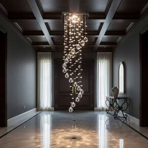 Este lustre pendente é a peça ideal para quem busca adicionar um toque de luxo e sofisticação à decoração. Com sua base quadrada de 14x14 cm em aço inox polido e espelhado, ele cria um lindo efeito luminoso, refletindo a luz dos cristais de forma magnífica.