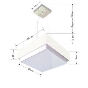 Lustre Para Sala de Jantar Vivare Md-4402 Cúpula em Tecido 40x40cm - Cor: Branco | Voltagem: 127/220V