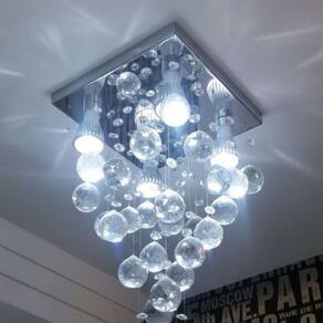 O lustre conta com uma base quadrada de 20x20 cm em inox polido e espelhado, que reflete o brilho dos cristais, ampliando a luminosidade do ambiente. Sua cascata de cristais legítimos K9 é composta por 25 pêndulos, com 25 esferas de 30mm e aproximadamente 150 castanhas de 14mm.