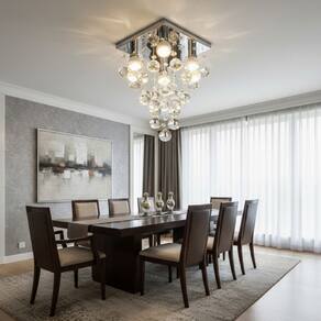 Salas de Jantar e Estar: Adicione um toque de sofisticação e luxo ao seu principal ambiente de convivência, instalando-o sobre a mesa de jantar ou no centro da sala.