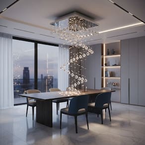 Ideal para Vários AmbientesGraças à sua versatilidade e design moderno, este lustre é a peça perfeita para transformar diversos espaços em um ambiente charmoso e cheio de personalidade. Ele é ideal para a instalação em: