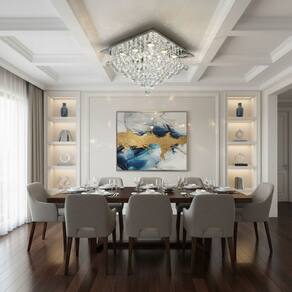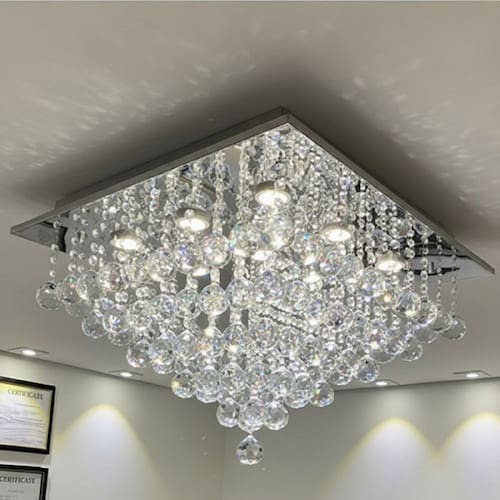 Transforme seu ambiente com este deslumbrante lustre quadrado, que combina design contemporâneo e o brilho intenso de mais de mil cristais. Com uma estrutura robusta e um acabamento elegante, ele é ideal para trazer sofisticação e uma iluminação espetacular a qualquer espaço.