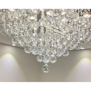 Cascata de Cristais: O lustre conta com 100 pêndulos, que incluem 100 esferas de 30 mm e aproximadamente 1000 castanhas de 14 mm de cristal K9 legítimo. Cada detalhe foi pensado para maximizar o brilho e criar um ponto focal deslumbrante.