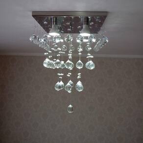 Lustre Para Sala Torres De Cristal Base Inox 30x30 Cm - Tamanho: 40cm / Voltagem: Bivolt