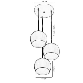 -Alimentação: Bivolt -Tipo de lâmpada: 3 x E-27. (não inclusas) -Peso Aprox. com embalagem: 2 kg -Dimensões aprox. do produto 15x13cm (bola) -1 Metro de Fio PP -Soquete de Porcelana -Canopla de Fixação de 19cm de diâmetro.