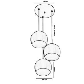 Pendente Bola Triplo O Pendente bola, adiciona luxo e sofisticação a sua decoração, Sua aplicação é muito versátil podendo ser instalada em quartos, sala de jantar, sala de estar, varanda, corredores ou onde a imaginação mandar. Nosso pendente é feito em alumínio, causando um lindo efeito luminoso, Uma peça que vai fechar com chave de ouro a decoração do seu ambiente. É indicada somente para uso interno, Utiliza 3 Lâmpadas E-27 de no máximo 30w cada. ESPECIFICAÇÕES Material: Aluminio Indicação: Iluminação e decoração Conteúdo da embalagem: 01 Pendente Bola 15 cm Dados Técnicos: -Alimentação: Bivolt -Tipo de lâmpada: 3 x E-27. (não inclusas) -Peso Aprox. com embalagem: 2 kg -Dimensões aprox. do produto 15x13cm (bola) -1 Metro de Fio PP -Soquete de Porcelana -Canopla de Fixação de 19cm de diâmetro.
