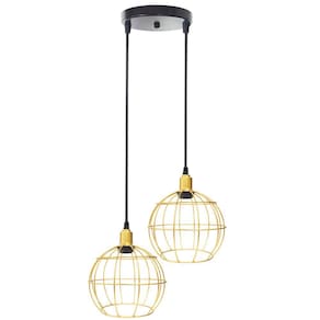 Lustre Pendente Aramado Duplo Globo Cabo Regulável Luminária Agp Ilumini - Cor: Dourado