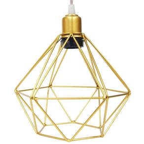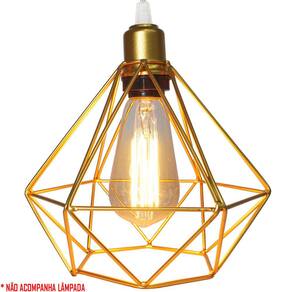 Lustre Pendente Aramado Triplo Diamante Cabo Cristal Regulável Luminária Agp Ilumini - Cor: Dourado