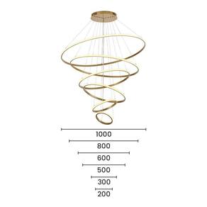 Lustre Pendente Astraled Skylight Pl-9850 Dourado Led Bivolt Dourado Pl-9850 Especificações Gerais do Produto:Voltagem: BivoltDimensões AxLxP (mm): De cima para baixo: Círculo 1: 1000mm; Círculo 2: 800mm; Círculo 3: 600mm; Círculo 4: 500mm; Círculo 5: 300mm; Círculo 6: 200mm ( Largura total do lustre 1000mm)Material: Alumínio e SiliconeGarantia: 1 ano junto ao fabricanteReferência: PL-9850Fluxo Luminoso: 17040 lúmensComprimento dos Cabos: Cabo ajustável, máximo 500 cmPotência: 213WLocal de Uso: InternoModelo/Tecnologia: LED Embutido O que vem na caixa:1 Lustre Pendente Marca: ASTRALED