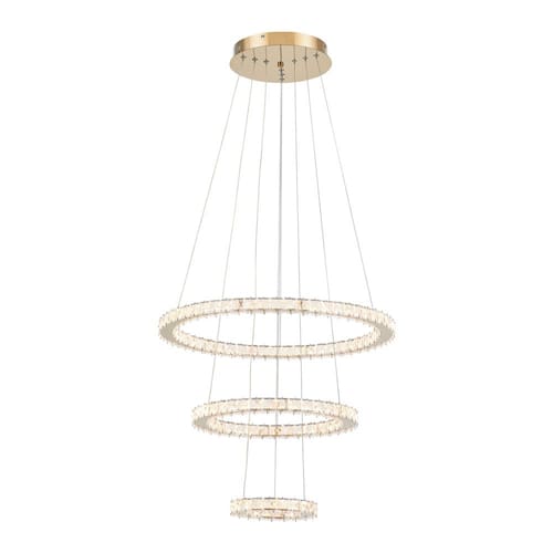Especificações Gerais do Produto: Voltagem: Bivolt Dimensões AxLxP (mm): De cima para baixo: Círculo 1: 600mm; Círculo 2: 400mm; Círculo 3: 200mm ( Largura total do lustre 600mm) Material: Inoxidável e acrílico Garantia: 1 ano junto ao fabricante Referência: PL-9747 Fluxo Luminoso: 6080 lúmens Comprimento dos Cabos: Cabo ajustável, máximo 200 cm Potência: 76W Local de Uso: Interno Modelo/Tecnologia: LED Embutido