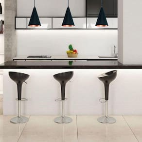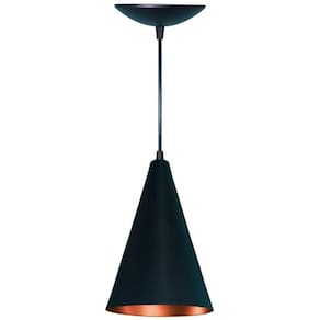 Luminária Pendente Cone, fabricada em alumínio, material altamente resistente ao tempo. Luminária composta por cabo PP com 1 metro de comprimento (tamanho ajustável), soquete E27, canopla e cúpula em alumínio. Luminária ideal para ambientes internos, utilizada em salas de estar, cozinhas, salas de jantar, área gourmet entre outras. Ilumine e decore o seu lar com nossas lindas luminárias. Deixe a imaginação tomar conta. Lindo pendente para quem gosta de um ambiente com estilo e bem iluminado. Material Alumínio (não enferruja) Medidas 15 cm diâmetro x 25 cm altura mais 1.00 m de cabo Altura aproximada montada de 1,25 m Altura Ajustável Soquete E27 (aplicável com lâmpada comum ou LED) Luminária Bivolt (127/220 v) Não acompanha Lâmpada Cor Externa Preto Fosco Cor Interna Cobre Garantia 3 meses de garantia contra defeitos de fabricação.