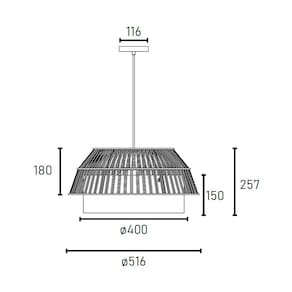 Especificações gerais do produto:Voltagem: BivoltDimensões AxLxP (mm): 257x516x516Material: Aço e fio algodãoGarantia: 1 ano junto ao fabricanteComprimento dos Cabos: Cabo ajustável, máximo 90 cmLâmpada Inclusa: NãoLocal de Uso: InternoNúmero de Lâmpadas: 1Potência Máxima (por soquete): 20WSoquete: E27Grau de Proteção: IP 20Frequência: 50/60 HzLâmpada Indicada: A60 O que acompanha o produto:1 lustre pendente