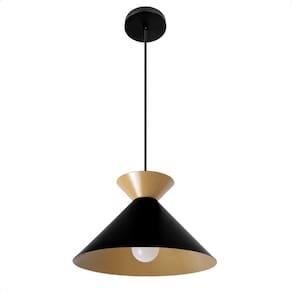 Lustre Pendente Blumenau Guto Minimalista E27 Bivolt Preto com Dourado