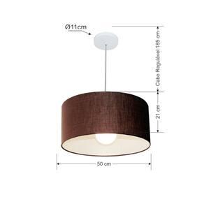 Lustre Pendente Cilíndrico 4052 Cúpula Tecido 50x21cm Café