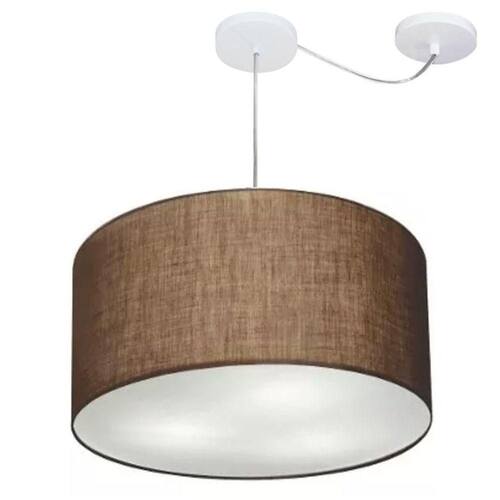 Lustre Cilíndrico C/ Desvio De Centro Md-4168 Cúpula Tecido 60x30cm Café