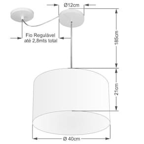 Pendente Com Desvio de Centro Indicado para decoração área interna, como mesas, sala de estar, sala de jantar, suite, quartos, corredor, hall, mezanino, escadas, churrasqueira, lareira, área de circulação, lojas, comércios, restaurante, varanda, balcão.DimensãoCúpula em Tecido: 40x21cm