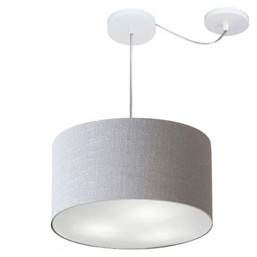 Lustre Pendente Cilíndrico Com Desvio De Centro Md-4256 Cúpula Em Tecido 40x21cm Rustico Cinza - Bivolt