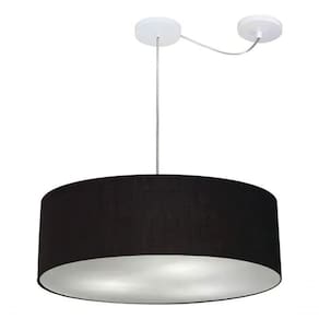 Lustre Cilíndrico C/ Desvio De Centro Md-4259 Cúpula Tecido 50x15cm Preto