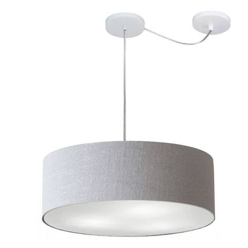 Lustre Pendente Cilíndrico Com Desvio de Centro Vivare Md-4222 Cúpula em Tecido 45x15cm - Bivolt - Cor: Rustico-cinza | Voltagem: 127/220V