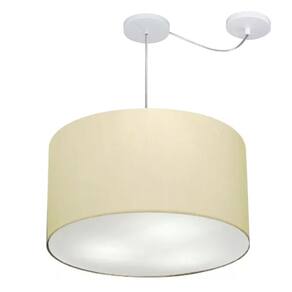 Lustre Pendente Cilíndrico Com Desvio de Centro Vivare Md-4239 Cúpula em Tecido 45x30cm - Bivolt - Cor: Algodão-Crú | Voltagem: 127/220V