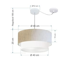 Pendente apresenta facilidade na instalação e manutenção e limpeza, além de possibilitar o ajuste da altura de acordo com suas necessidades. O que oferecem um charme único aos espaços e estão cada vez mais presentes na decoração e Iluminação.DimensãoCúpula em Tecido: 25x45x40cm