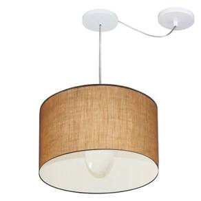 Lustre Pendente Cilíndrico Com Desvio Md-4226 Cúpula Tecido 40x25cm Palha