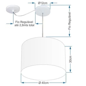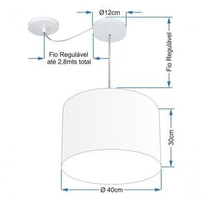 Pendente Com Desvio de Centro Indicado para decoração área interna, como mesas, sala de estar, sala de jantar, suite, quartos, corredor, hall, mezanino, escadas, churrasqueira, lareira, área de circulação, lojas, comércios, restaurante, varanda, balcão.DimensãoCúpula em Tecido: 40x30cm