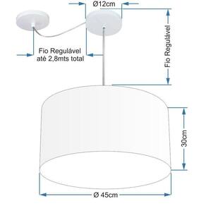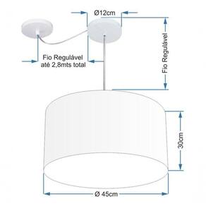 Pendente Com Desvio de Centro Indicado para decoração área interna, como mesas, sala de estar, sala de jantar, suite, quartos, corredor, hall, mezanino, escadas, churrasqueira, lareira, área de circulação, lojas, comércios, restaurante, varanda, balcão.DimensãoCúpula em Tecido: 45x30cm