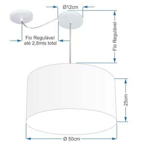 Lustre Pendente Cilíndrico Com Desvio Md-4230 Cúpula Tecido 50x25cm Palha