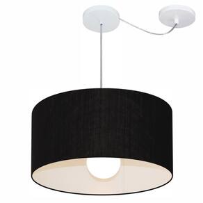 Lustre Pendente Cilíndrico Com Desvio Md-4230 Cúpula em Tecido 50x25cm Preto - Bivolt