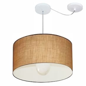 Lustre Pendente Cilíndrico Com Desvio Md-4231 Cúpula Tecido 50x30cm Palha