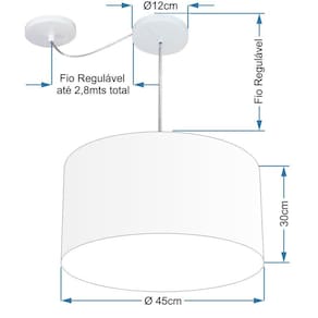 Lustre Pendente Cilíndrico Com Desvio Md-4235 Cúpula Tecido 45x30cm Algodão Crú