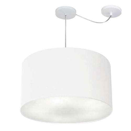 Lustre Pendente Cilíndrico Com Desvio Md-4235 Cúpula Tecido 45x30cm Branco