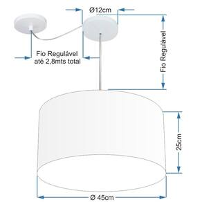 Lustre Pendente Cilíndrico Com Desvio Md-4236 Cúpula Tecido 45x25cm Palha